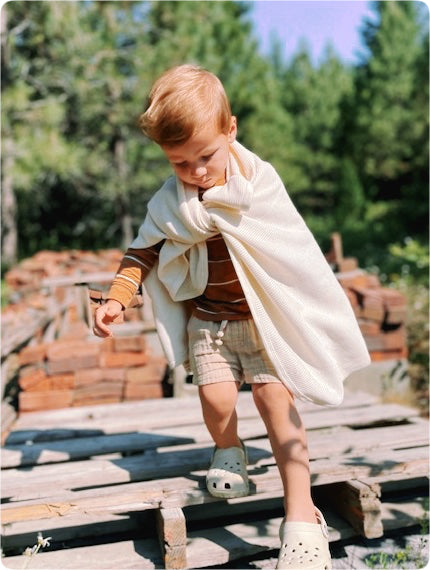 This stretchy thermal organic cotton is great for swaddling. Edges are finished with soft US Organic cotton jersey material for added comfort.